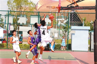 選手們?cè)谶M(jìn)行男子籃球比賽。