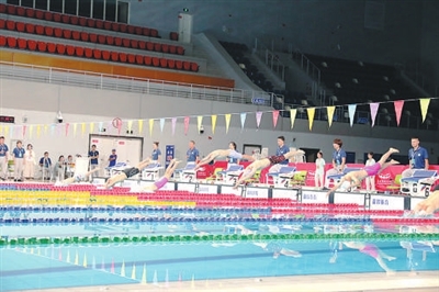 選手們?cè)谶M(jìn)行男子自由泳比賽。 閆鎖田 攝