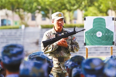 除航海訓練外,水上訓練、輕武器訓練、行軍拉練、野外生存等項目也緊扣海軍實戰需求,考驗學員的體能與意志。來自北方民族大學的莊一鳴雖擅長游泳,但在水中穿越魚雷管道、翻越滾筒等障礙時仍覺得有不小挑戰。“這些項目不僅考驗體能,更是對意志的錘煉。”她表示,父親曾在南海艦隊服役,軍人家庭的成長環境讓她對軍事訓練充滿熱情,也激勵她在訓練中不斷突破自我。