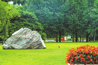 繞行至“延安精神”石背面,蜿蜒的線條一同鋪展開來,記載著學校從延安到北京的“紅色育人路”。1940年1月,黨中央批準延安自然科學研究院更名為自然科學院,標志著學校作為教學機構的誕生,是歷史的起點。1945年12月,按照黨中央部署,自然科學院向東北進發,因解放戰爭爆發,留在華北辦學,直至1949年9月學校遷至北京,其間先后在河北張家口、建屏(今平山縣)柏嶺、井陘等地辦學。