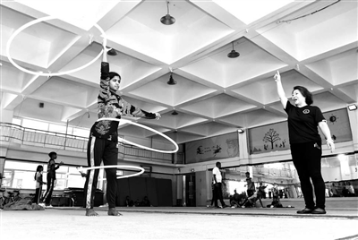8月20日,來自孟加拉國的學員在河北吳橋雜技藝術學校排練廳內練習雜技。