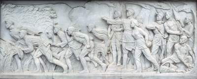 《人民英雄紀念碑浮雕·抗日游擊戰爭》 張松鶴(雕塑) 辛莽(繪畫) 1958年中國美術館藏