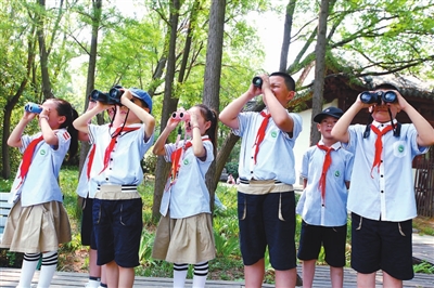 江蘇省徐州市鼓樓生態園小學開展“探索生物的奧秘”主題研學活動,學生們來到徐州市云龍湖風景名勝區觀察鳥類活動,學習生物知識。 蒯創 攝
