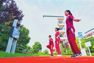 9月4日,江蘇省徐州市新元中學,學生在“AI智慧操場”上開展體育鍛煉。近年來,該校依托人工智能、大數據和物聯網技術,對學生體育運動成績、技術動作、運動過程等進行實時采集、數據分析與專業指導,提升課堂效率,提高學生參與體育鍛煉的積極性。 蒯創 攝
