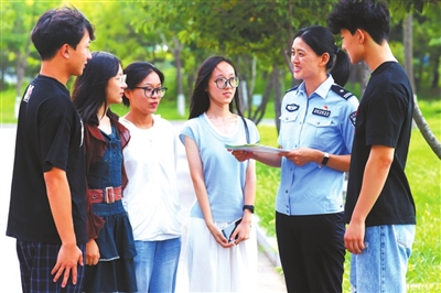 近日,在山東省高密市,2025級大學新生在聽當地公安局反詐中心民警講解反詐知識。李海濤 攝